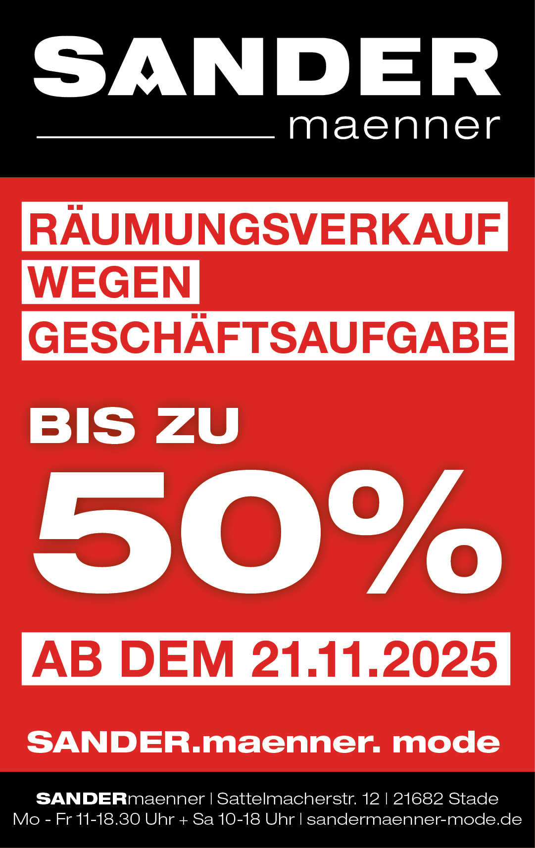 Mitten in Stades Altstadt finden SANDERmaenner die richtige Mode für ihren persönlichen Style und nach ihrem Geschmack. Eine exklusive Auswahl an Herrenmode namhafter Modelabels wie CINQUE, DESOTO, ALBERTO, LANGER CHEN, FIL NOIR, DIDRIKSONS, WOOL&CO, WELLENSTEYN, SEIDENSTICKER, ECOALF, BURLINGTON SOCKS, JOOP! JEANS, FIVE FELLAS und RAGMAN bietet viele Möglichkeiten, sich authentisch und mit hohem Wohlfühlwert zu kleiden.